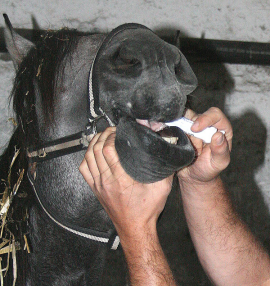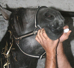 Les règles à respecter pour administrer un vermifuge en pâte orale à son cheval : - S'assurer que le cheval n'a rien dans la bouche ( sinon il rejetterait la pâte avec les aliments contenus dans la cavité buccale ). - Introduire la seringue au niveau de la commissure des lévres. - Déposer le vermifuge le plus en arrière possible sur la langue. - Maintenir la tête du cheval en hauteur pendant 30 secondes ( le temps que la pâte colle sur la langue). - Le soir, donner un repas de son frisé pour favoriser l'évacuation du contenu digestif et des vers.