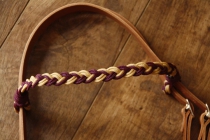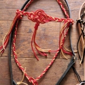 Notre bridon vaquero possède un frontal décoration type rosace à franges, et une sous gorge tressée, en corde marine ..