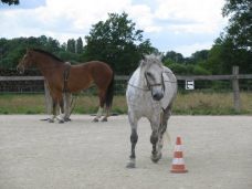 Avant de monter à cheval, le cavalier procède à la dernière phase de dressage, notamment à l'usage des rênes.