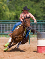 Dans le barrel racing, ou course entre les barils, le concurrent entre dans la piste à toute allure en enclenchant le chronomètre. Il suit un parcours en forme de trèfle à quatre feuilles et arrête le chronomètre en quittant la piste.