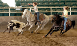 Le team roping qui se joue en équipe est la seule discipline de rodéo pratiquée par deux coéquipiers. L'un attrape la tête du taureau, tandis que l'autre immobilise ses pattes.