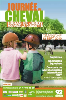 Le Haras de Jardy – propriété du Conseil général des Hauts de Seine et premier centre équestre de France – vous accueille à l’occasion de sa nouvelle Journée du cheval, que vous soyez en famille ou entre amis. Concours de saut d’obstacles, baptême à poney ou à cheval, informations sur les différents métiers et échanges avec des professionnels… De nombreuses animations et démonstrations de qualité vous sont proposées tout au long de cette journée.