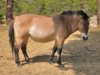 Equus caballus (cheval domestique) qui comprend la sous-espèce Equus caballus przewalskii (Cheval de przewalski) qui est le dernier cheval sauvage