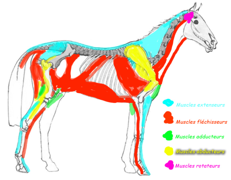 Les muscles sont les moteurs du mouvements du cheval.