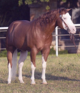 Le pie sabino a souvent des balzanes montant au-dessus des genoux et des jarrets.