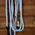 * corde marine polyester de 14 mm de diamètre environ * pourvue d‘un mousqueton et d‘un popper en cuir. * Sa souplesse et son toucher vous apporteront confort et maniabilité
