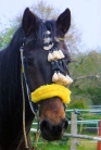 * fabriquée à partir de tissu imitation mouton * molletonnée à l‘intérieur en coton naturel BIO * Se fixe par velcro autour de la muserolle