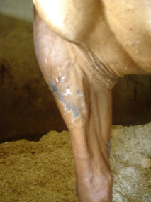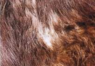 La teigne est une infestation causée par un champignon parasite. Contrairement à beaucoup d'autres champignons, la teigne développe des spores qui vivent longtemps en anaérobie (organisme qui est capable de vivre sans oxygène) dans la robe du cheval. Les spores ne peuvent donc germer qu'en vivant continuellement en milieu humide. En hiver, la teigne a tendance à se développer sur la croupe. L'infestation se développe sous les poils et sous une croûte épaisse. La même infection peut se déclarer au niveau du canon inférieur lorsque celui-ci reste recouvert de boue. C'est la raison pour laquelle cette maladie s'appelle aussi la fièvre de boue. Etant donné que le micro-organisme ne peut pas survivre au contact de l'oxygène, il est essentiel d'enlever les traces de boue. Le pus qui sera exposé à l'air disparaîtra lorsqu'il est sec. Ce processus peut être accéléré en traitant la région affectée à l'aide d'une solution avec 1% d'alun. Bien que les traces de boue des cuisses s'enlèvent plus facilement à la main, il est préférable de brosser les membres en utilisant un shampooing antiviral. En cas d'infestation aiguë ou d'enflures, il est nécessaire d'administrer des antibiotiques. Pour faire disparaître l'infection, le cheval doit rester propre et sec.